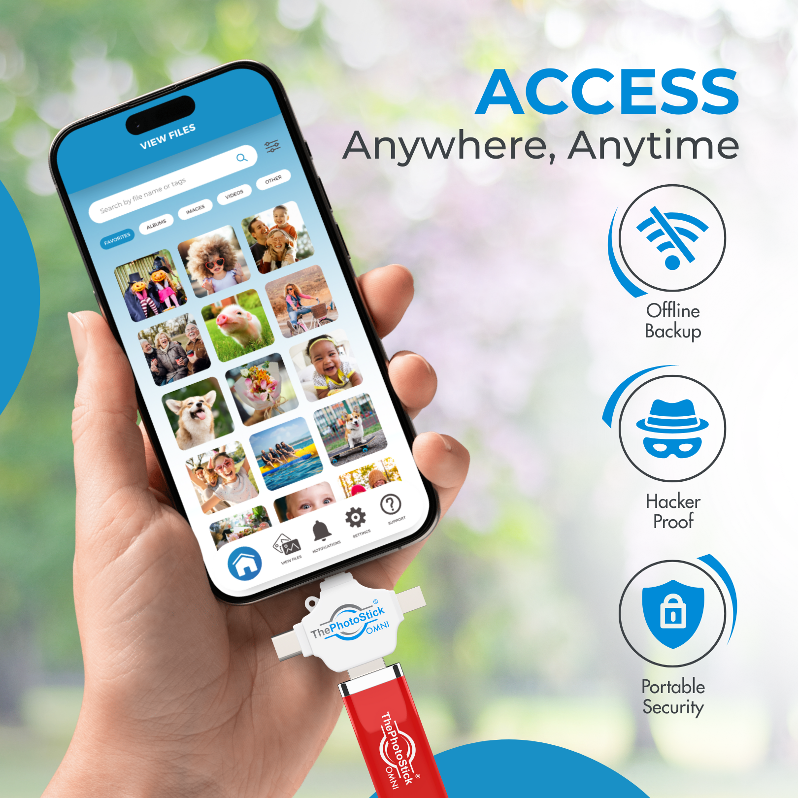 Mit 512 GB Speicherplatz ermöglicht Ihnen ThePhotoStick® Omni, über 204.000 Ihrer Lieblingsfotos und -videos zu sichern .